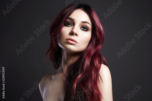 © eugenepartyzan, Fototapeta premium Pink Hair Beautiful woman with make-up