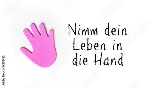 © Doreen Salcher, Obraz premium pink hand - having a message - take your life