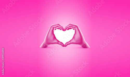 © Ahmet Aglamaz, Fototapeta premium pink Heart Shape hand Love Valentine Day or February 14 Valentine's Day World heart day, world health day 3d render Isolated on pink background hd quality
