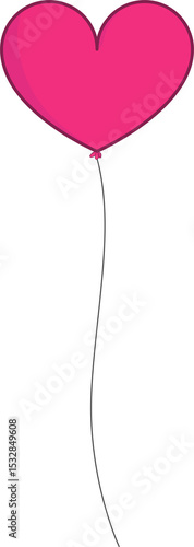 Fototapeta premium Pink heart-shaped balloon is floating in flat design with knotted string,...