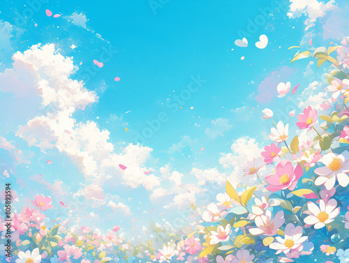 © nan, Obraz premium Pink heart-shaped flowers under the starry sky romantic blank background