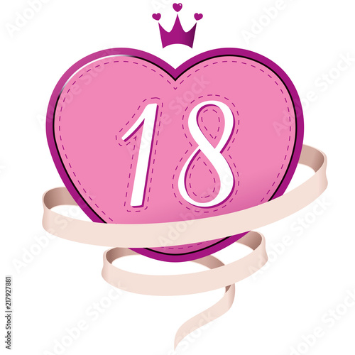 Obraz premium Pink Heart with a Crown, Ribbon and Number 18