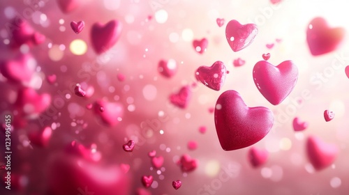 © ArutalaWat, Obraz premium Pink Hearts Floating In A Romantic Setting