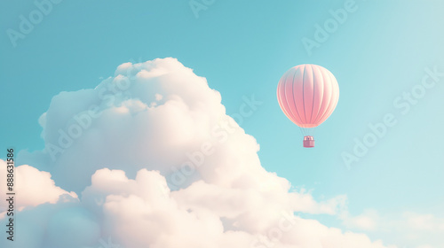 Fototapeta premium Pink Hot Air Balloon Floating Among Soft Clouds in Blue Sky..