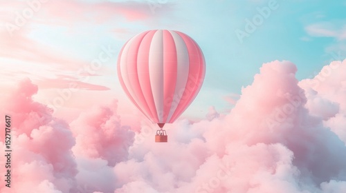 Fototapeta premium Pink Hot Air Balloon in Pastel Clouds