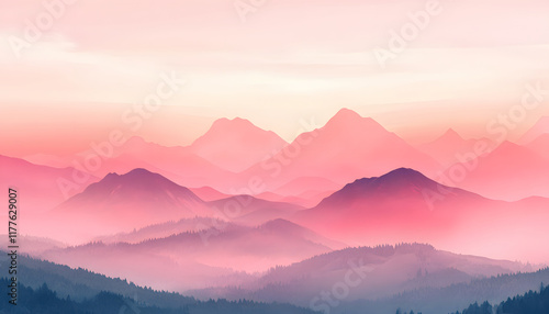 Obraz premium Pink Hues Over Misty Mountain Ranges