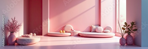 © Dallia, Fototapeta premium Pink interior scene with minimalist furniture and soft lighting.