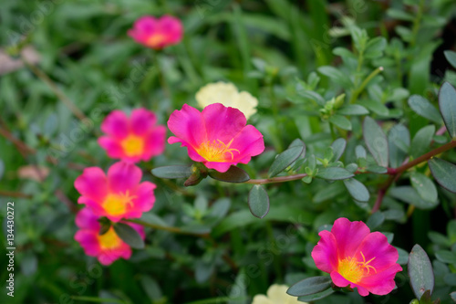 © tukkata88, Obraz premium pink l ittle Hogweed flowers with green leaves
