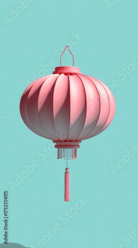 © NikahGeh, Obraz premium Pink Lantern Floating Against a Turquoise Background.