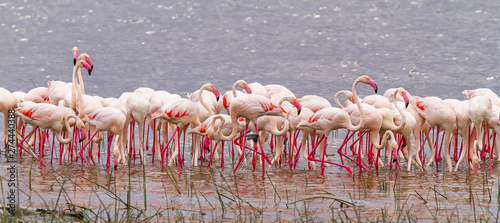 Naklejka premium Pink Lesser flamingoes flamingos Phoenicoparrus Lake Nakuru National Park...