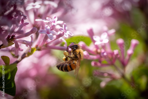 © Vesna, Fototapeta premium Pink lilac flower with a bee