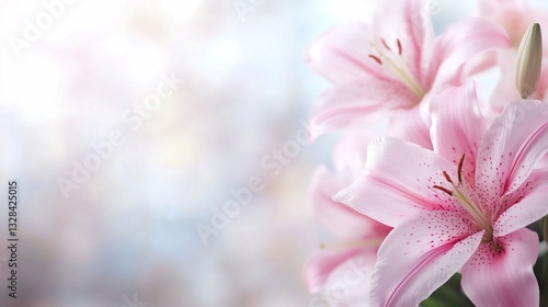 © ngamaz, Fototapeta premium Pink lilies blooming in a soft-focus, dreamy light