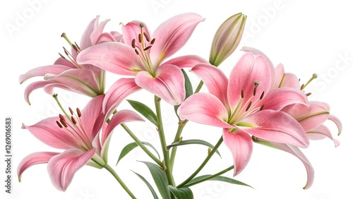 © Luckystation, Naklejka premium Pink Lilies Bouquet: Delicate pink lilies in full bloom, showcasing their elegant petals and vibrant color, create a captivating floral arrangement.