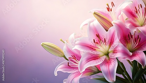 Fototapeta premium Pink lilies, close-up, soft lighting, gradient background