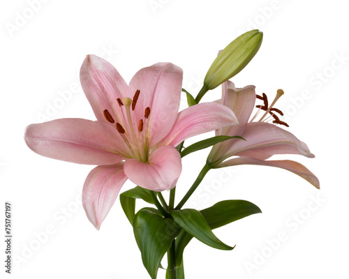 © Peter, Naklejka premium Pink Lilies on a White Background