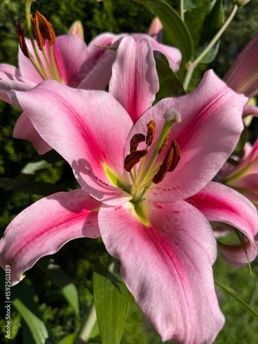 © Anna, Naklejka premium Pink lily flower close up nature background