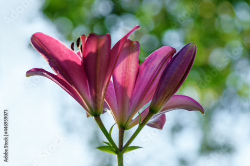 © borislav15, Fototapeta premium Pink lily flower in the garden. Spring and summer background