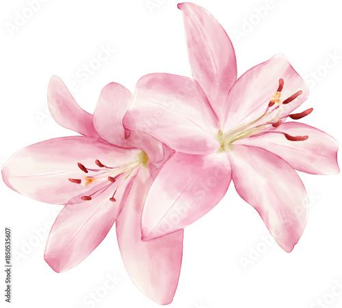 © Labellong, Fototapeta premium Pink Lily Flower Watercolor