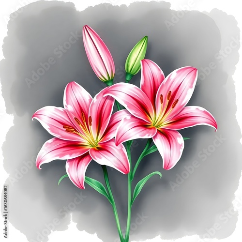 © Binte , Fototapeta premium pink lily flower watercolor illustration