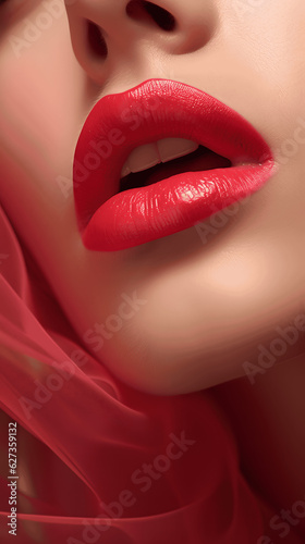 © Sanja, Fototapeta premium Pink Lips Close-Up Showing Lush Color in Beauty Routine