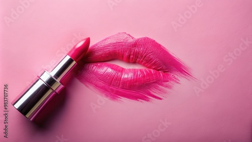 Obraz premium Pink lipstick smudge on a pink background, makeup product texture, cosmetics, beauty, vibrant, fashion, elegant, feminine