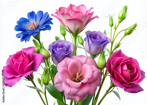 © chaowalit, Fototapeta premium Pink Lisianthus, Texas Bluebell, Prairie Gentian Flowers - White Background