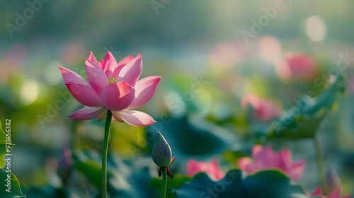 © Generative AI, Obraz premium Pink lotus background image select focus : Generative AI