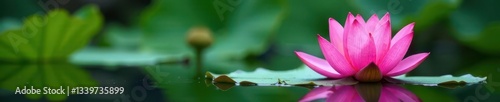 Fototapeta premium Pink lotus blossom emerging from serene pond water , peace, aroma, water lily