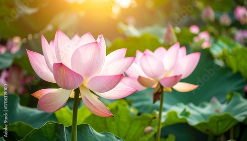 Fototapeta premium Pink lotus blossoms in sunlight