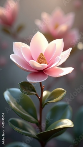 Fototapeta premium Pink lotus flower blossom with yellow center