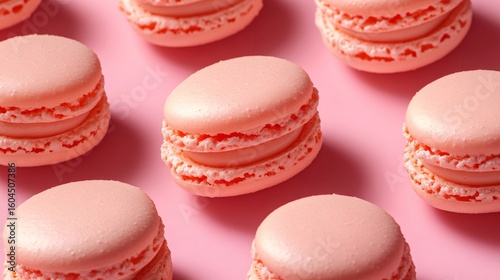 Obraz premium Pink macarons forming a pattern on pink background