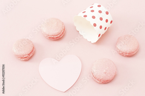 © images and videos, Obraz premium Pink macaroons with the blank note