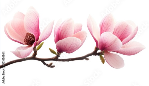 Naklejka premium Pink Magnolia Blossoms on Branch Against White Background