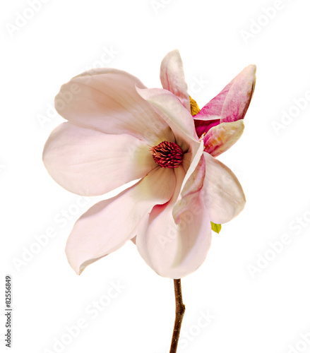 © Negoi Cristian, Naklejka premium Pink Magnolia branch flowers, tree flowers, white background.