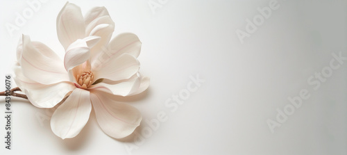 © Elena, Obraz premium Pink magnolia branch with spring flowers on a white background for design and postcard.