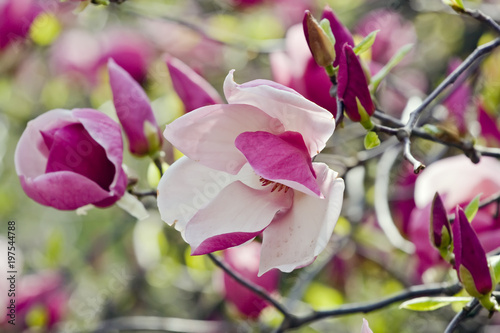 © sunselle, Fototapeta premium Pink magnolia tree in bloom