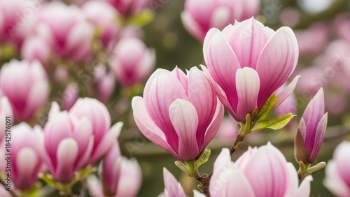 Obraz premium pink magnolia tree in garden during springtime Natural floral background