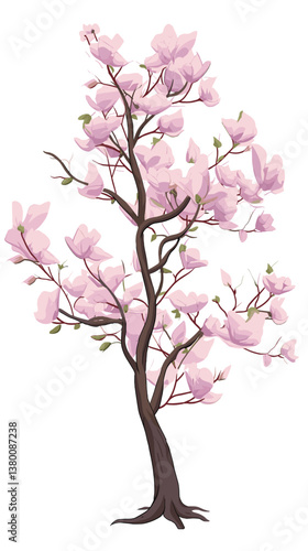 Naklejka premium Pink magnolias in full bloom - elegant floral tree illustration flat vector...