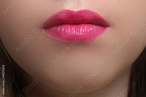 Fototapeta premium Pink make-up of lips close-up