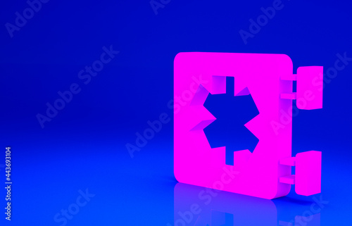 Obraz premium Pink Medical symbol of the Emergency - Star of Life icon isolated on blue background. Minimalism concept. 3d illustration 3D render