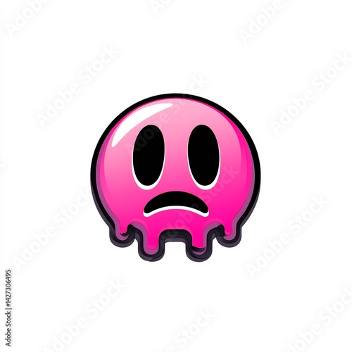 Fototapeta premium Pink melting face emoji with dark outline on white background