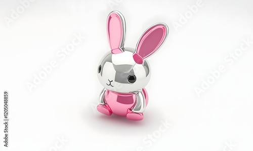 © Maryanto, Obraz premium Pink metallic bunny, studio shot, white background, Easter