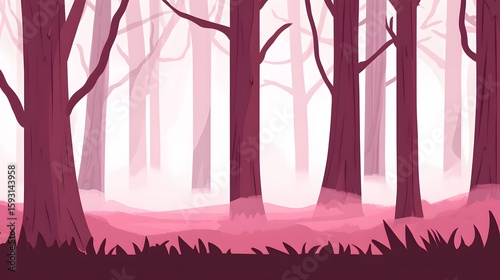 © Fashion2, Obraz premium Pink Misty Forest Background Illustration