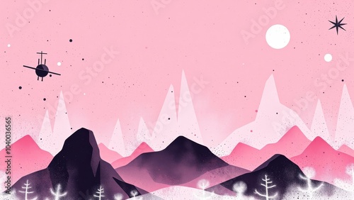 © Habibur Rahaman, Obraz premium Pink mountain range with a spaceship