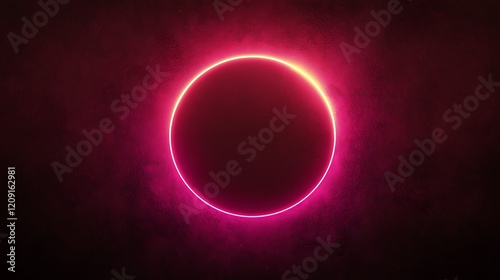 © inisial, Fototapeta premium Pink Neon Circle Glowing on Dark Textured Wall