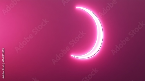 © lisa, Naklejka premium Pink neon crescent moon, dark background