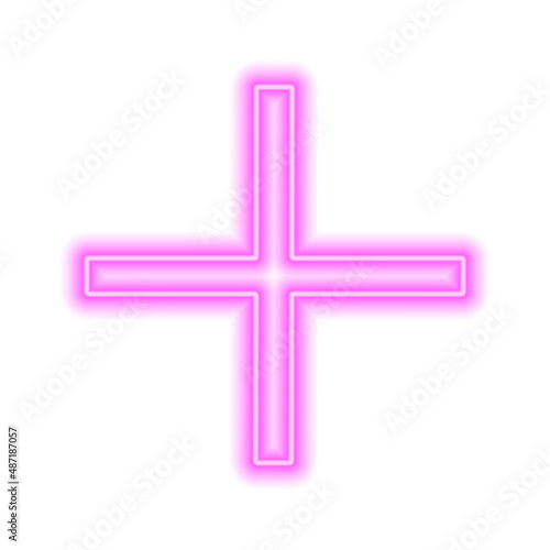 © Vitalij Kuleshow, Fototapeta premium Pink neon cross isolated on white. One object. Plus sign