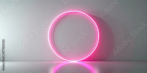Obraz premium Pink neon ring on a white wall, minimalist design, bright light, modern...