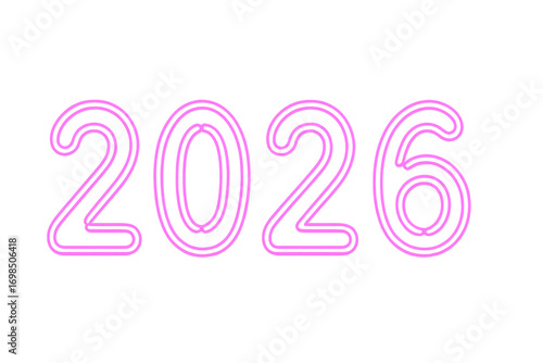 Fototapeta premium Pink neon sign showing 2026 on transparent background