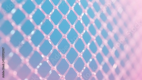 © Arif Al Mahmud, Fototapeta premium Pink netting creates a diamond pattern against a blue background